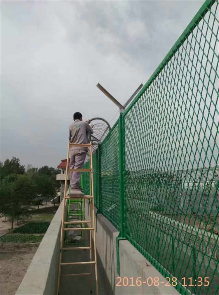 監獄護欄網也被稱為“ Y形安全防御護欄網”。它由V形支架柱、加固的焊接薄板網、安全的防盜連接器和熱浸鍍鋅的刀片籠組成,具有很高的強度和安全防御能力。監獄護欄網采用電鍍、熱浸鍍、噴塑、浸塑等防腐形式,具有良好的抗老化、耐日曬和耐候性。其產品外形美觀、花色多樣,不僅起到防護的作用,還可以美化。由于其高安全性和良好的抗攀爬能力,網片連接方法采用特殊的SBS緊固件來有效防止人為破壞性拆卸,四個水平彎曲加勁肋可提高網格表面的強度。