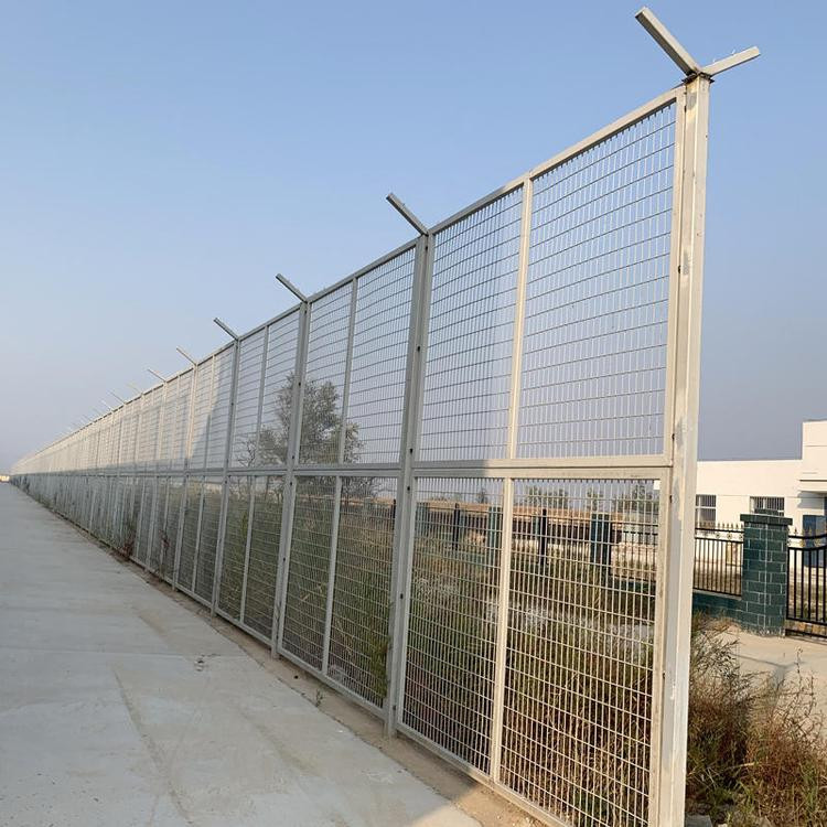 監(jiān)獄鋼網(wǎng)墻有在平地安裝的也有在圍墻上二次安裝的,可以加高圍墻高度,也可以用作放風(fēng)網(wǎng)使用,是由尖銳的不銹鋼板或鍍鋅鋼板刀片和普通圍欄組成的,其材質(zhì)堅(jiān)硬,高強(qiáng)度,高張力,不易觸摸。因監(jiān)獄鋼網(wǎng)墻能起到很好的阻嚇隔離作用,**常被使用在監(jiān)獄、看守所、軍事基地等高安全場(chǎng)所。