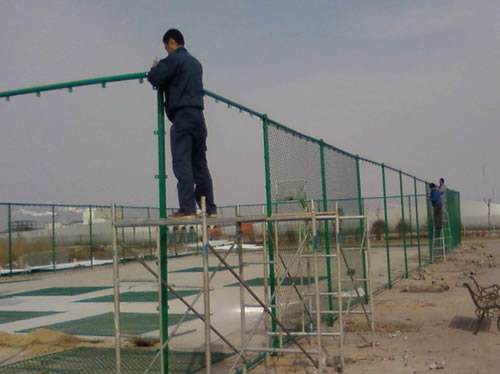 ①室外籃球場(chǎng)圍網(wǎng)施工工序?yàn)椋旱装骞潭?span lang="EN-US">----網(wǎng)立柱鏍栓安裝----頂、底橫桿鏍栓安裝固定---掛網(wǎng)----網(wǎng)門安裝。